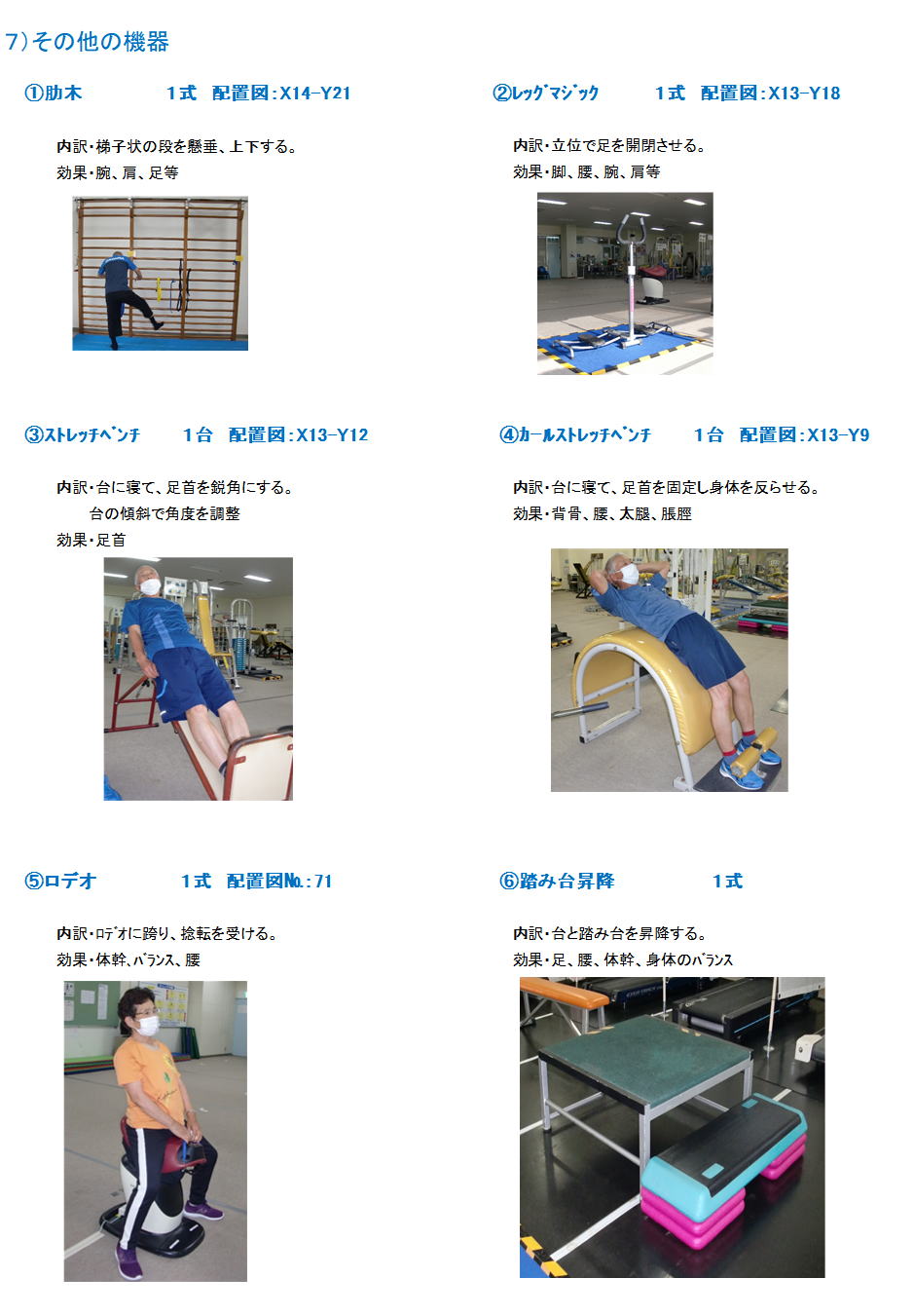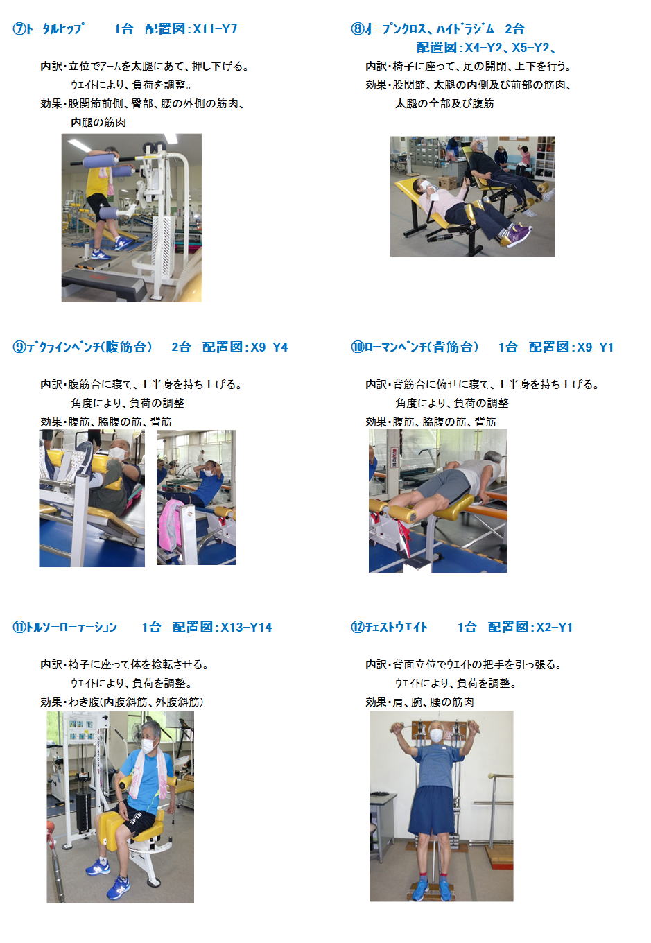 ※ トレーニング機器の運動説明と効果については、このページをご覧ください。