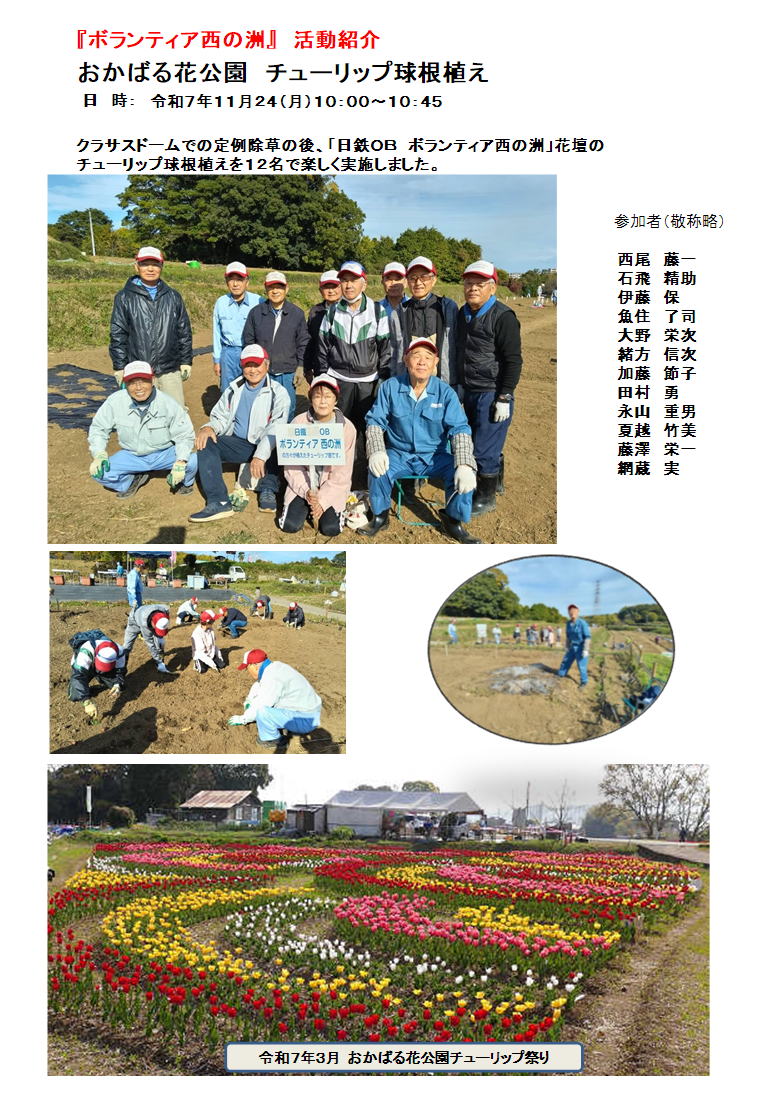 | 6.岡原市民公園チューリップ球根植え&除草活動 | ||||||||||||||||||||||||||||||||||||||