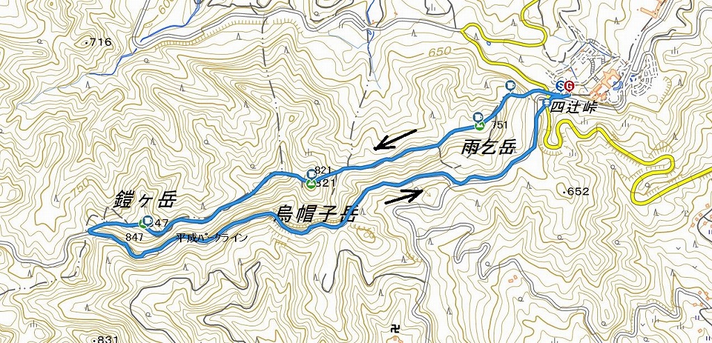 | 雨乞岳(751m)・烏帽子岳(821m)・鎧ヶ岳(847m)トレッキング実績 | ||||||||