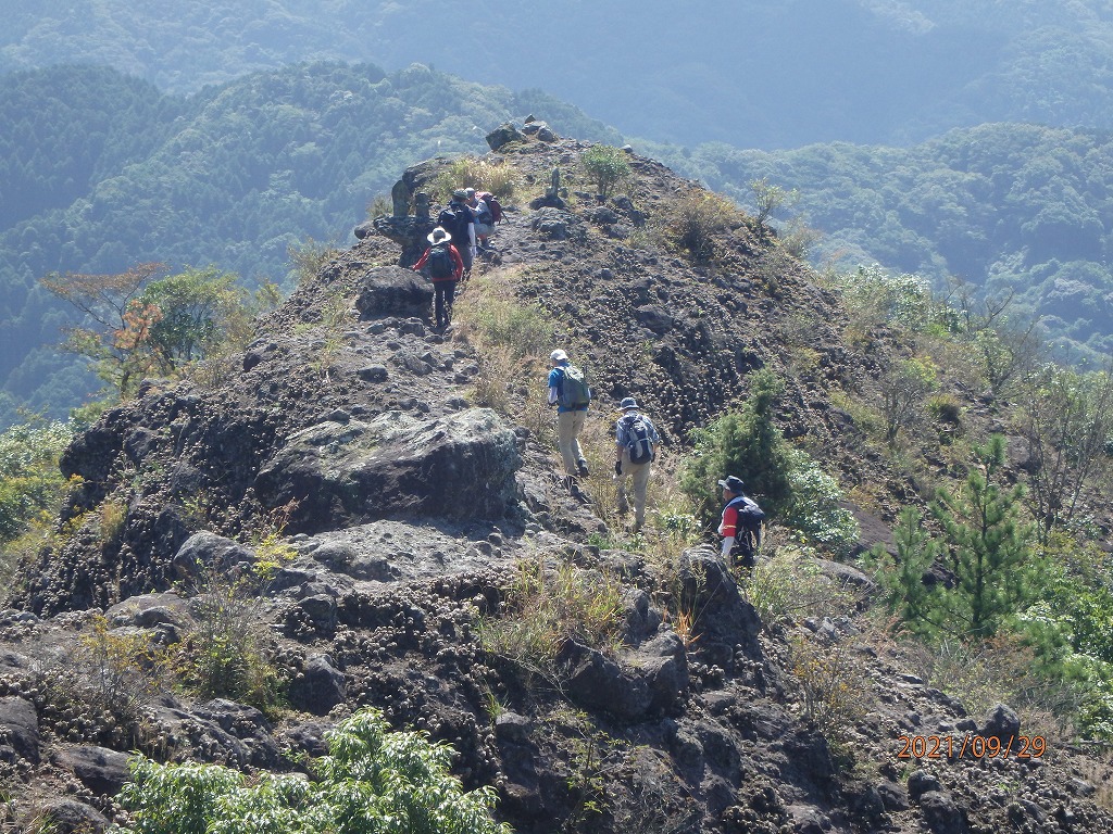 今年度もコロナ禍の影響で、あらゆる行事が中止となり、山の会も今年度初めての山行となりました。険しい東尾根では少し緊張しましたが、展望を楽しみながら、慎重に歩き無事通過しました。 今年度入会された方も初参加で、感激されたようです。 当初17名の参加予定でしたが、実績は12名の参加となりました。 総合所要時間5時間10分。 積算歩行距離約6.5km。 |