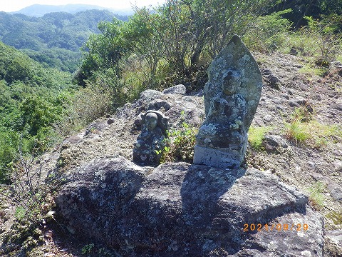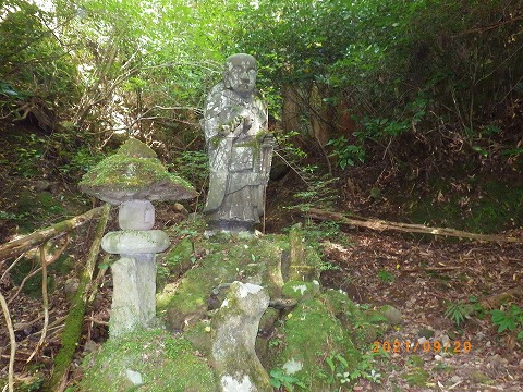 | (13)全員無事、東尾根を通過しました。最後の88番大師像が出迎えてくれます。ここから、ロープ場を下り、登山口に戻ります。クリックで拡大 |