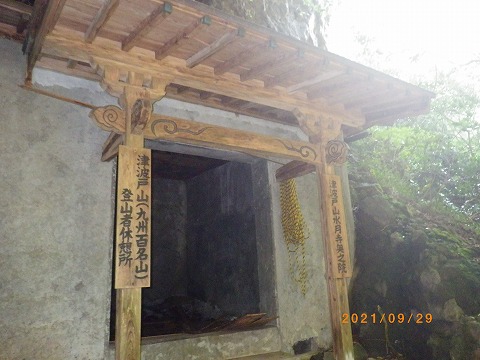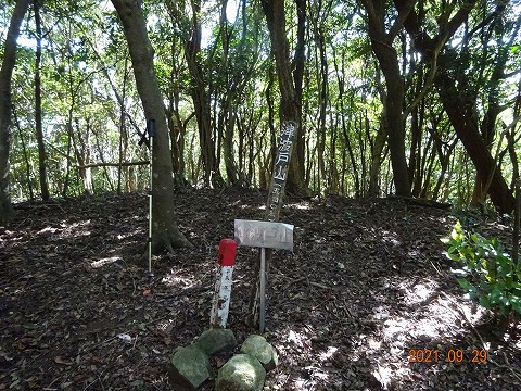 | (7) 津和戸山水月寺奥之院です。中は真っ暗ですが、仏様が祀られています。 | (8) 津和戸山本峰(540m)です。木々で覆われていて展望は望めません。 | |