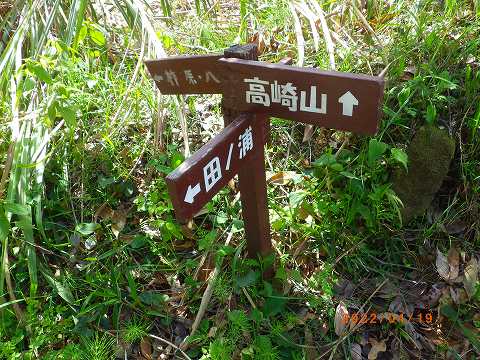 | (3) 目指す高崎山です。 | (4) 田ノ浦ビーチから、案内看板に従い約53分後に、柞原神宮からの道と合流します。 | |
