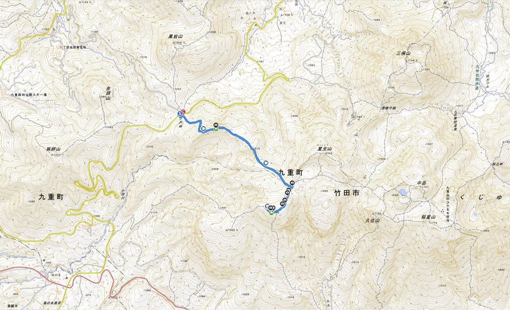 | 上り所要時間 | 1:37 | 牧ノ戸登山口標高:1330m | ||||||||