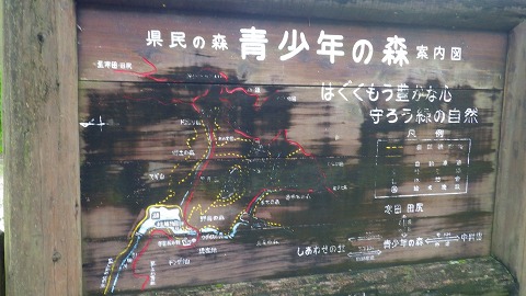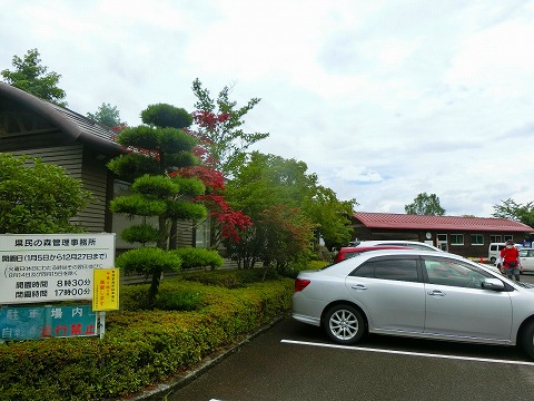 | (1) 地形図 国土地理院の地図を利用した、YAMAP(地形図)からコピーし、地図の一部に書き込みをしたものです。クリックで拡大 | (2)県民の森管理事務所前に駐車させていただきました。10時頃出発です。 | |
