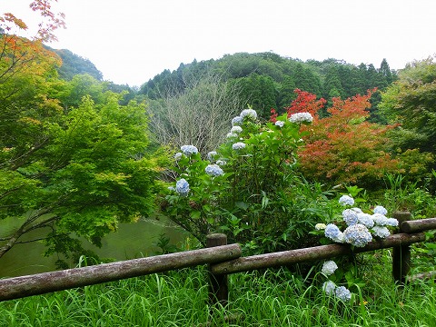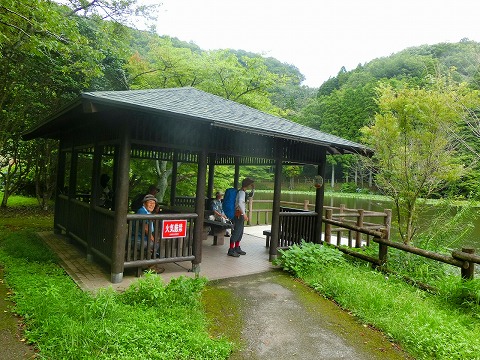 | (13) 池を左に見ながら進みます。 | (14) 東屋もあります。(チョット一服) | |