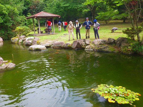 | (17) 隣にある、森のカフェです。営業は、金・土・日です。 | (18) 人工池です。たくさんのコイがいました。周辺で昼食を取りました。 | |
