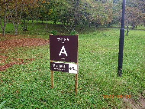 | (3) 9時40分頃、志高湖を左に見ながら、元気に出発です。 | (4) 9時43分頃、キャンプ場です。A~Lまであり、100張り近く可能だそうです。 | ||