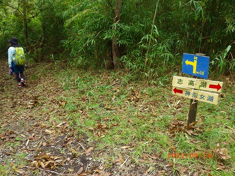 | (9) 市街地、別府湾別府湾が一望できるはずですが・・・・クリックで拡大 | (10) 記念撮影後、神楽女方面に下ります。 | ||