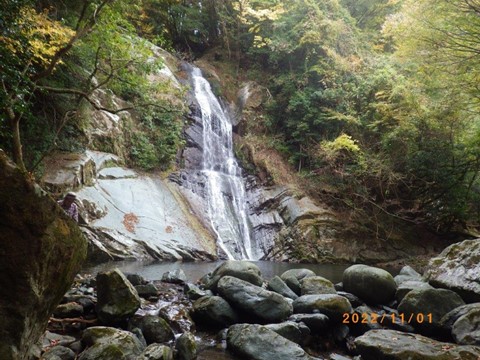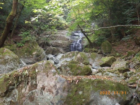 | (1) トレッキング実績のGPS軌跡(クリックで拡大) | (2) 御社(オヤシロ)の滝 | ||