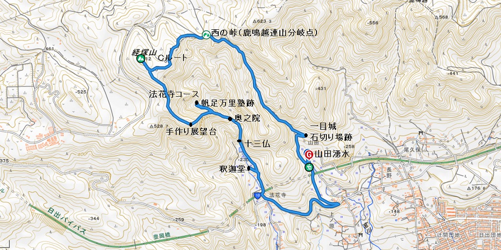 | 経塚山頂上 発 | 12:20 | 11:05 | ||||||