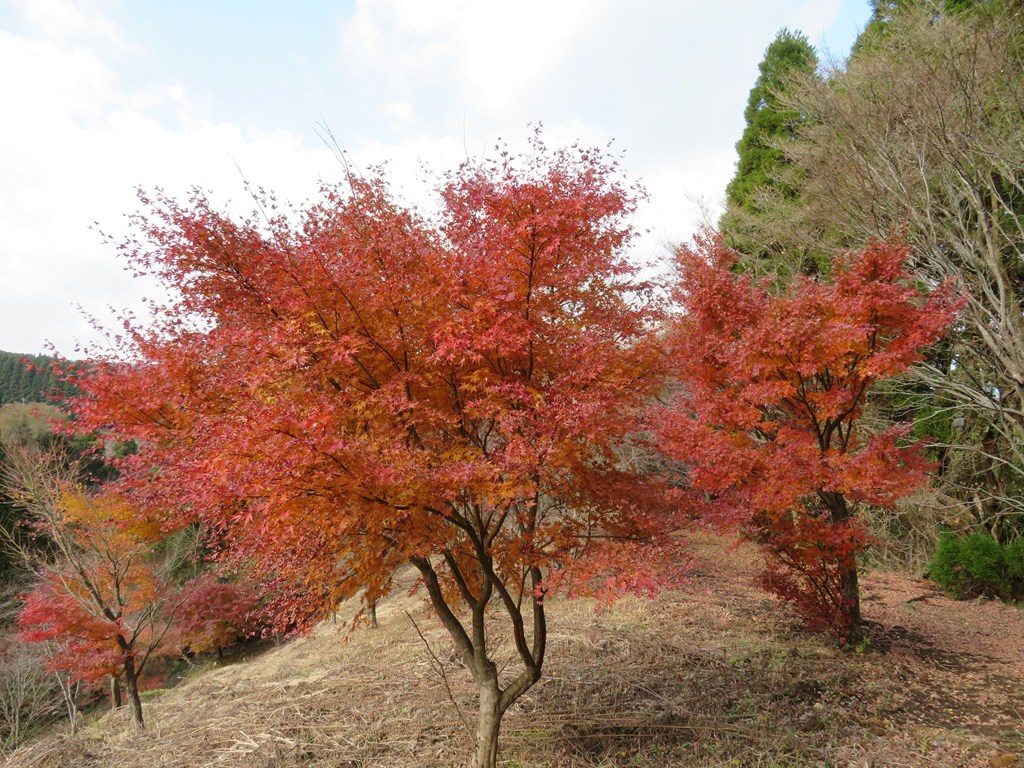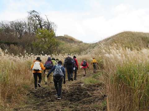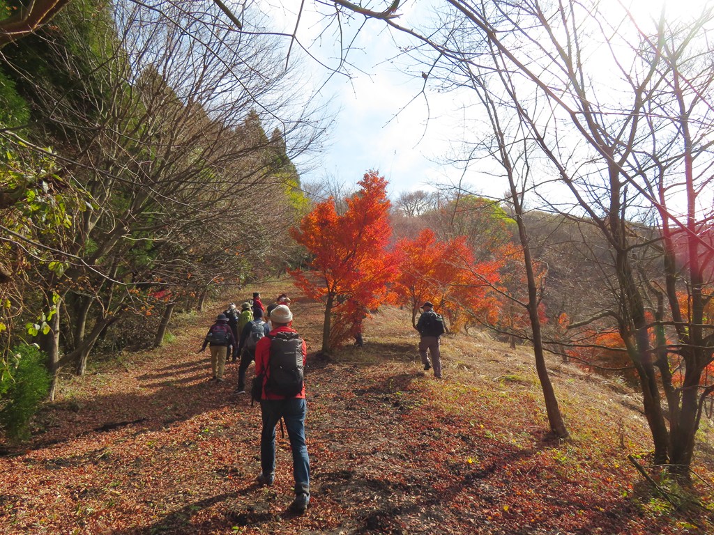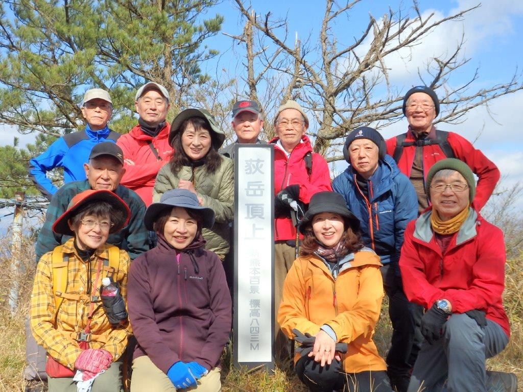 | 今回で3年連続での「荻岳登山と荻の里温泉までをウォーキング」の同一コースでの忘年登山です。波野ウオーキングセンターまで宿のバスで送って頂き登山準備をする。木々の紅葉を眺めつつ落ち葉の中を荻岳山頂を目指します。 山頂からは、阿蘇根子岳、祖母山、傾、鶴見岳、由布岳と久住連山(黒岳・大船山・稲星山・久住山)の眺望を楽しむ。山頂に雲がかかっていたのは残念でした。数日前の冷え込んだ日は祖母・傾と久住連山の山頂付近は雪景色だったのことですが、今回はお目にかかることは叶いませんでした。 山頂の風の当たらない処で昼食を摂る。暖かいカップ麺は格別に美味しく感じました。昼食後は下山、波野ウォーキングセンター横の「荻神社」にお参りし、今夜の宿の「荻の里温泉」まで車道8キロのウォーキングです。 |