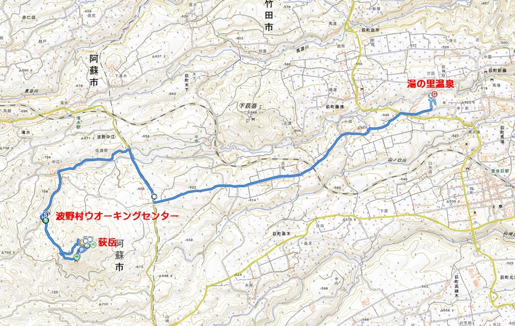 | ・体育館駐車場集合 10:00出発→11:37波野ウォーキングセンター発→15:00荻の里温泉着 | ||||||