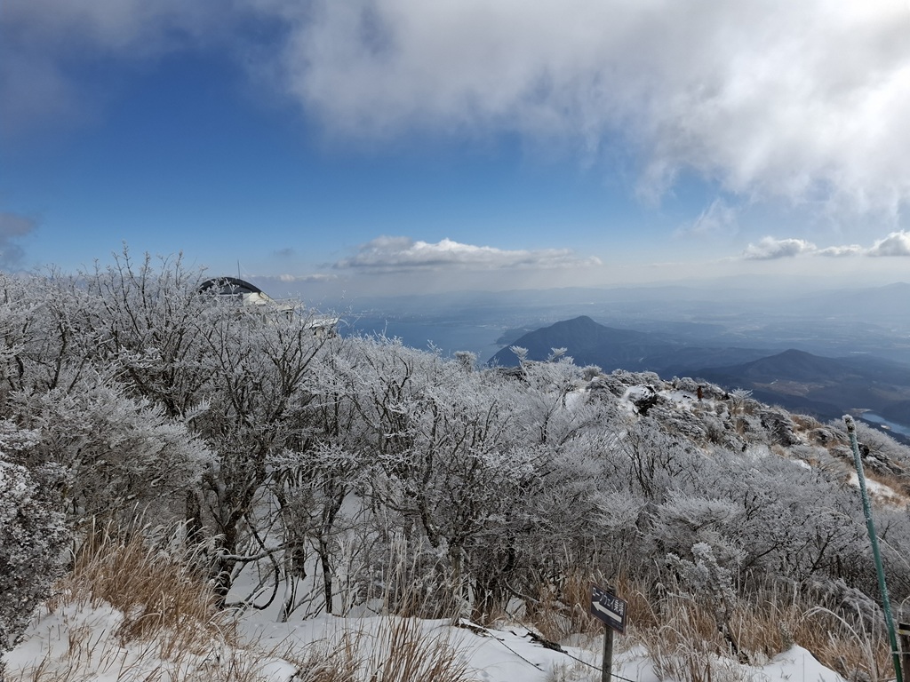 | (16) 下山後、青空に映える鶴見岳が見えました。 |