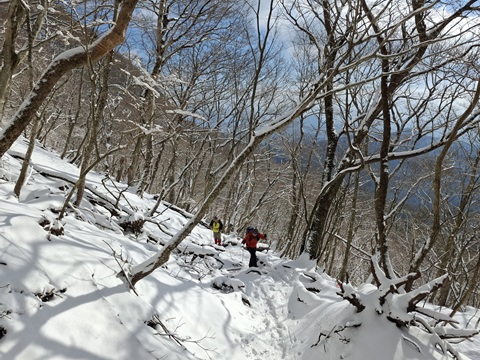 (5) 御嶽権現社登山道からアイゼン装着して一気登山ルートを登る。