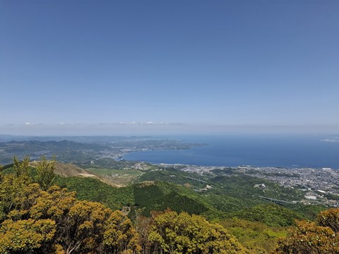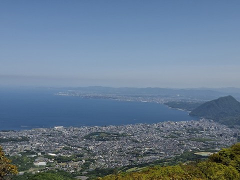 山頂からの景色、群生地から見る別府湾、そして山道からの眺めも疲れを癒してくれた。 |