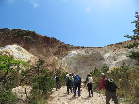 らしい山肌がまずは目の前に現れ、各自思い思いのアングルで写真撮影。天気も良く、 |