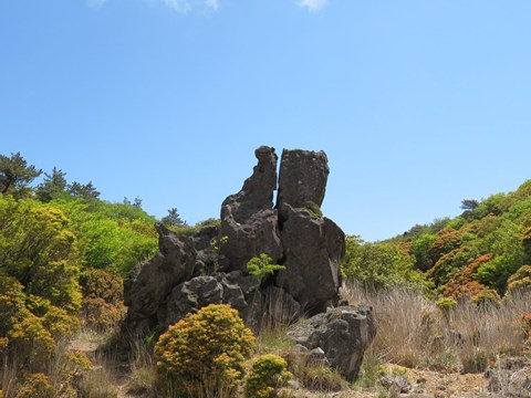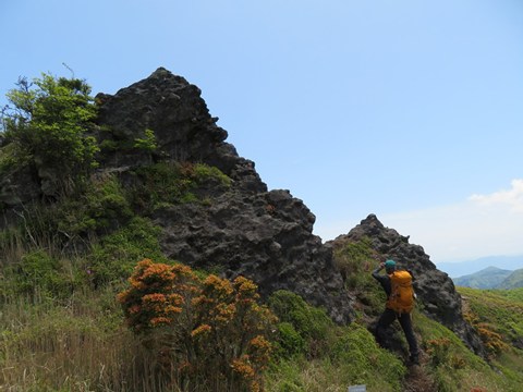 *一刀岩、伽藍の窓(奇岩を額縁に高崎山がおさまる)、伽藍の槍(3-4m、登った人を |