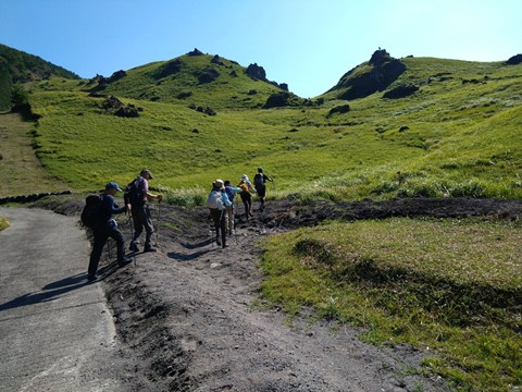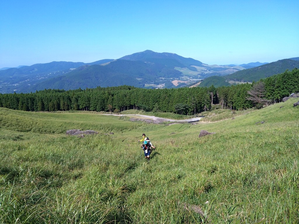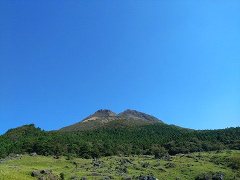 ・<登山者の少ない由布岳西登山口から、草原を気持ち良く歩き、飯盛ケ城に登頂する。> |