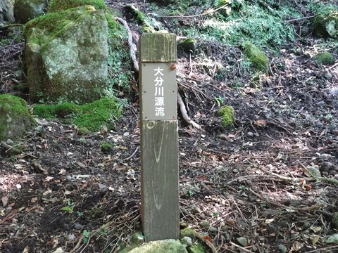 (飲用不可)に着いたが沢の奥を探索・・・、有った!「大分川源流」の碑に出会う |