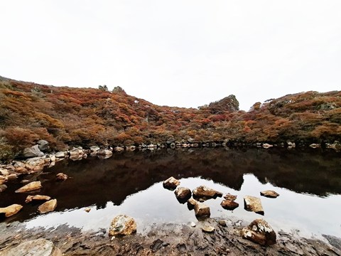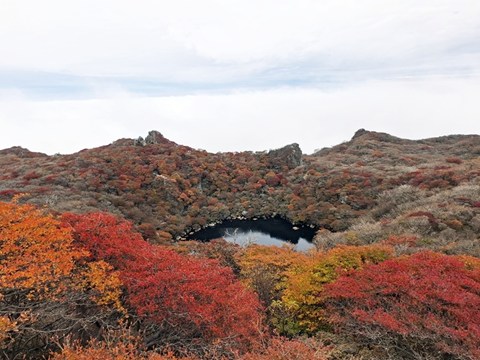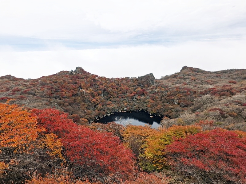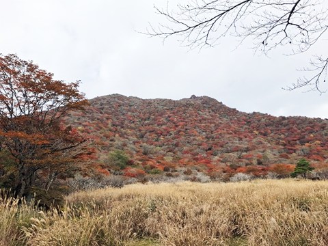 昼食・休憩後、御池に下りて火口湖周辺の紅葉も楽しみました。 |