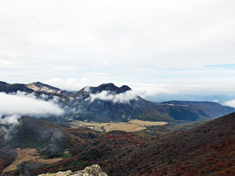 昼食を食べてる間にガスが晴れて、素晴らしい紅葉を楽しむ事が出来ました。